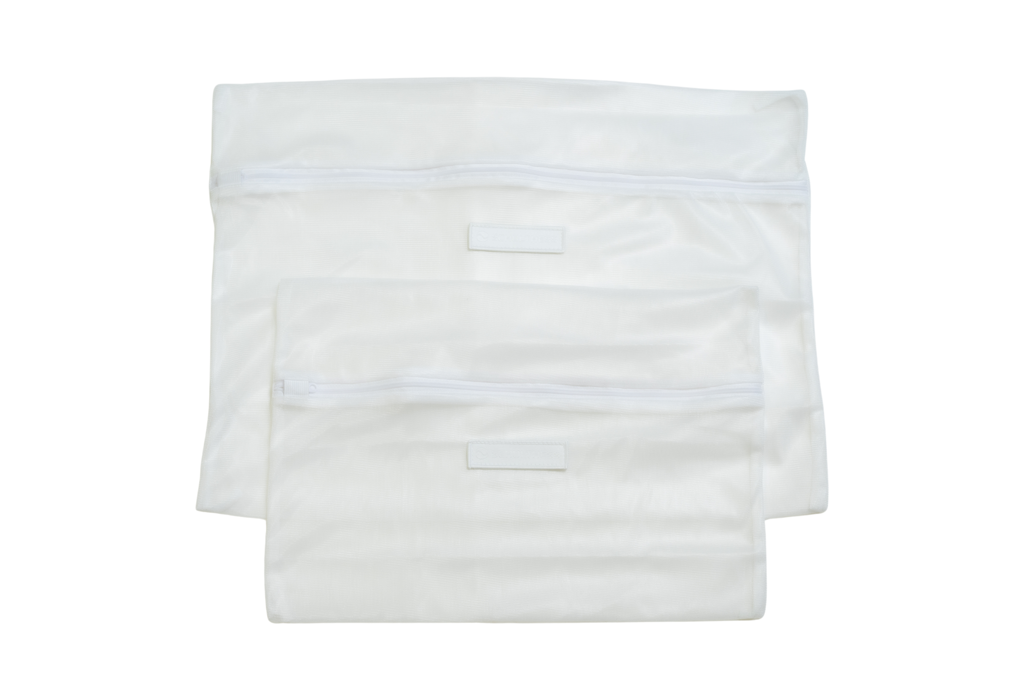 Die Beutel sind bis 60 °C waschbar und mit einem verdeckt eingenähten Kunststoff-Reissverschluss ausgestattet, der die Wäsche schützt und das Entstehen von Löchern verhindert.